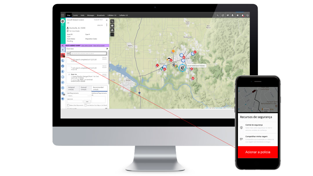Amplie a capacidade de resposta da sua corporação, fornecendo aos usuários de aplicativos um botão para solicitem ajuda com apenas um clique, e ao mesmo tempo obtenha dados da situação e dos envolvidos para o despacho imediato de recursos ao local.