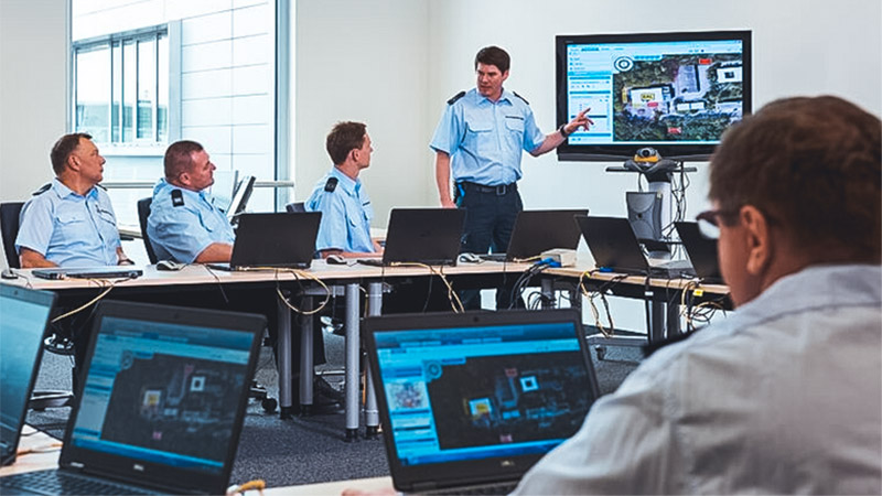 - Chamadas de voz, vídeo de pré-alarmes, bodycams, dashcams, drones, SMS e emails